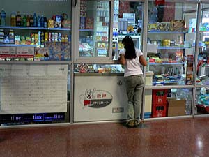 ごくごく普通の売店ですが、その正面に置かれた冷蔵庫の正面には?(マウスオンで拡大します)