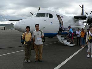 ガイドのゾルさんに聞いてみると、このアエロモンゴリアは数年前(調べてみると2003年6月らしい)に就航を開始した民間航空会社で、ロシアと中国の近距離国際線をのぞいては基本的に国内線運航らしい。規模は違えどかつてのJASと同じような経営パターンですね。所有機体はアントノフではなくオランダのフォッカー50がメイン(または全て)だとか。ありゃまー(残念)。いや、機体そのものは全然新しいからこっちのほうがいいんだけれどね(複雑)。