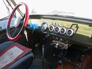 その「道の激しさ」に追い打ちをかけるのが(笑)、かの「ロシアンジープ」。前にも書いたように「実用一点張り」、すなわち壊れない、アクシデントに強くドライバーの腕次第で自己修復可能なほどシンプルな作り。ということは、その一方で犠牲にせざるを得ないものといえば‥そう、居住性です(笑)。いやぁ、サスペンションはガチガチのガチ。日本製四駆の数倍とも思える「大地の起伏に対する感受性の豊かさ」を実体験できます(笑)。