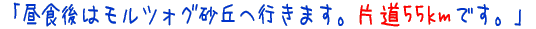 というわけで、いきなり「舗装路あたりまえ」のUBから空路で飛んできてしまった我々にとっては、「これからの旅の厳しさ」を感じずにはおられません。だって、この時点でゾルさんからこんな「本日の予定」も聞いていたのですから(笑)。
