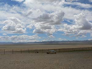 さて上の画像を見てもらえばわかるとおり、本当に真っ平らに見えるここ南ゴビ。はるか彼方にちょっとした丘陵があるくらいのように見えますが、実はこれぞ距離感覚の違いからくる魔術。