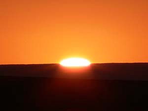 はるか彼方の地平線から昇る朝日。右写真がトップバナーに使った画像であるのは‥見ればわかりますね(苦笑)。