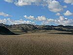 そう、手持ちの高度計によると(ただし高度補正はしていませんでしたから、最大100m前後の誤差はお許し下さい)、キャンプの標高は1550mだったのに対し、遙か向こうに見える山の裾部分にあるヨーリンアムの標高は何と2250m!実は向こうに見えていた「丘」のほうまで、少なくとも麓のあたりまででも700mくらいはとにかく緩やかにずずずいっと上り坂的に傾斜していたわけですね。だからこそそんなにも遠くまで見えていたというわけなんですが‥