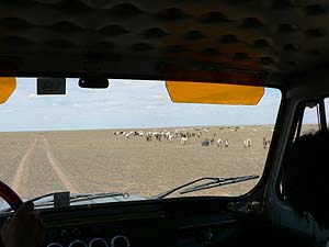またも、わだち以外になぁんもない平原を進みます。こんな場所でも放牧されてるのね。エサはほんのわずかな草?
