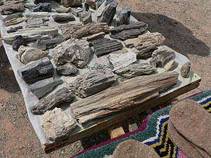 さて、ここには「いつ来るともわからないお客」を待つ露天のおみやげ屋さんがありました。そういえばナミビアでも、珪化木(木の化石)が露出した保護地域のすぐ外に、アメジストを売る似たような雰囲気の露店があったっけ。あそこもまぁ気長な商売だったよなぁと思いつつこちらの商品を見てみると‥
