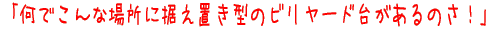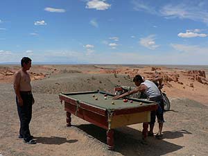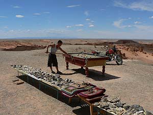 そりゃ雨が滅法少ない場所だというのは確かですよ。そしてもちろん、この場所に何を持ち込もうとそれは全くの自由ではあるのですが、なぜここにビリヤード台?周囲の風景とのギャップが何ともたまらず、かぁなり嬉しくなったTakemaでありました。思いおこせば、ネパールはポカラのペワ湖畔にあった卓球台にも同じような思いを抱いた記憶がありますが、あそこは町中、ここは「お客が来なけりゃ(一緒にやってくるドライバーさんと)ゲームもできない」場所ですからねぇ。よく考えればすごくゼータクな設備なんですよね(何だか改めて感動)。