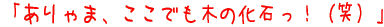こちらが珪化木(化石)。売り子のおいちゃん、暑いのでご覧のような格好での接客モードです(笑)。