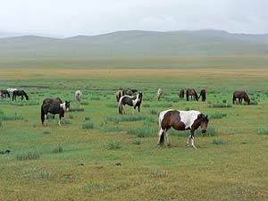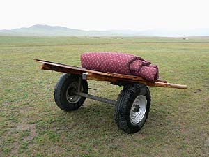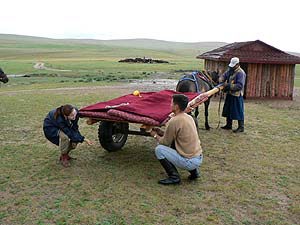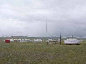 前夜は夕食前などにモンゴル版の双六(羊の蹄をつかった遊び、これが結構面白い!)やモンゴル紹介ビデオなどで楽しんだのですが、写真は一枚もないので割愛。しかし夕暮れ前あたりから雨が降り出し、朝になっても天候回復の気配がないのはあまりにも残念。まぁ、モンゴルの降雨量の大半(雪をのぞく)はこの時期に降るわけですからある種致し方ないかなぁ。