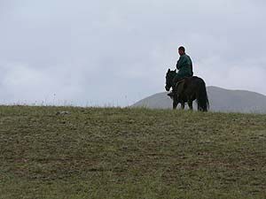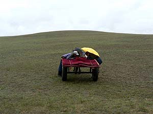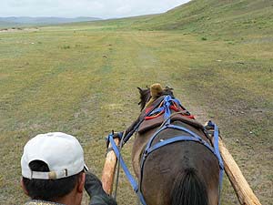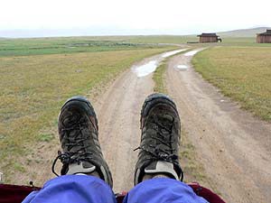 と言われてかなりびっくり。何だ往復コースだと思っていたけれど、知らないうちにぐるぅーっと回ってきていたのね(右上写真で遠くに見えているのがわれわれの宿です)。わたしゃ方向感覚についてはそれなりに自信があったのですが、それはあくまで日本での話で、ここモンゴルの雄大な草原の中ではなぁんも役に立たないということにはっきり気づいた瞬間でした(笑)。