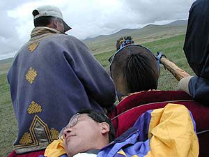 どこからか、馬に乗った少年が一人で現れ、オボーの周りを回った上でまたどこかへと消えていきました。かっこいいぞ少年。で、ホースガイドの少年とゾルさんが何やらいちゃいちゃムード。何をやってるのか聞いてみたら、携帯電話の着信音を聞かせていたんだそうな。そういやTakemaはまだ着メロの設定の仕方すら知らないんだっけ(汗)。