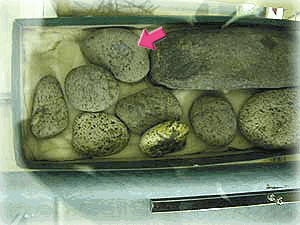 また、彼は彼なりに帰京を願ったことでしょうか、河原の小石に文字(法華経の中の文字)を書き付けて流したということです。居酒屋「花女里家」のマスターが子供の頃、文字が書かれた石がよく見つかる場所があったということですから、それが俊寛自身の手による「本物」かどうかはともかくとしても、作り話ではないということですね。
