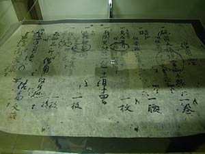 これがその「借用証」。暗くてわかりにくいが、「○○一巻」「○○一腰」「○○一枚」など