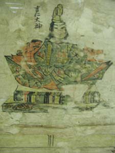 さて、安徳天皇については古来から「実は女性ではなかったか」というような説があるようです。幼時からほとんど一握りの近親者だけで育てられ、ほとんど表舞台に姿を現さなかったということがこの話の根拠の一つになっているのでしょうが、長濱家に代々伝わる巻物にはこの安徳天皇が次のように描かれています(開発センター所蔵品を撮影させていただきました)。