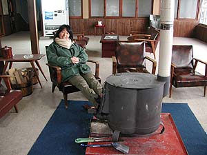 駅まではまた送迎車に乗せていただくので、出発時間まではストーブそばで待機の図。