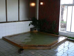 広い浴室にしては比較的小振りな浴槽に(ただし浴室が広いからそう思うだけで、実際はそれなりの大きさですが)、掛け流しの湯がどんどん流し込まれているのは嬉しい限り。これまたしょっぱい系の湯ですから、何だかこの日は「あったまりの湯行脚」という感じです。こういうお湯の場合、湯上がりに吹かれる風が気持ちいいんですよねぇ(そのかわり真夏無風の日はたまらなくキビシイともいいますが)。