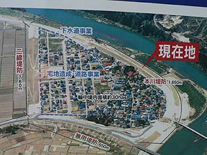 さて風呂上がり、ほてった身体をGWの風に任せんがべく土手の界隈を歩いていたら‥うわ、雄物川に面したこのあたりは実はすごいところだったということが判明、この土手は「現代の輪中」だったんですね!