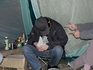 時間的に、寝言だったのかとも思われますが、寝袋も薄かったんでしょうか。それになるほど酒パワーも切れてきてよっぽど寒かったのね(同情)。