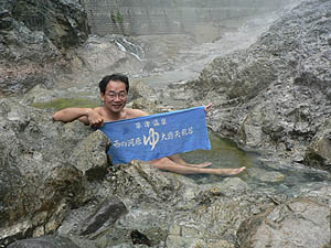 意を決し、速攻で服を脱ぎ、ダッシュで浸かって記念撮影、その後手早く撤退したことはいうまでもありません(コワカッタ)。浴感?うーんよく覚えておりません(笑)。