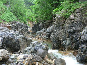 ちなみに旧中の湯のあった付近の河原にもいくつか湯が出ている場所があるということでしたが、中の湯側からはアプローチ不可(私有地内立ち入り禁止)ということで、今回はあえなく断念いたしました。雨さえ降っていなければ多少の困難は乗り越えるんですが、何だか気持ちが萎えちゃっていたのも事実。やっぱり野湯行脚はお天気の日に限るよなあ。