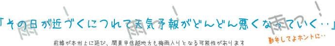 出発前日には「14日=曇りのち昼前から雨、15日=雨」という、何ともはや悲しい予報になってしまったのであります。というわけでバイクはさすがにパスすることにしました。だって、雨の中湯船を作ってびしょ濡れになって、苦労して湯に浸かったあとに今度は雨具を着こんで走り出し、外は濡れ濡れ内部は蒸れ蒸れという状況だけは避けたいですからね。やむを得ず車で出かけることにしましたが、実際のところバイクで強行していたらどうなったことやら系の雨続きとなりました。ふう。
