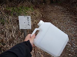 汲むモノがモノゆえ、ポリタンは内ブタ付き密閉仕様のものです。ちなみに今回は水汲みを重視した結果、この他に30リットル分のポリタンを持参しました。「酔い覚めの水」は美味しいものを飲みたいですからね(笑)。