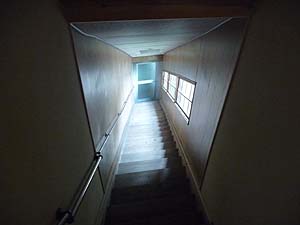 女湯へはこんな階段を下りていきますが、何だか登っているようにも見えます。