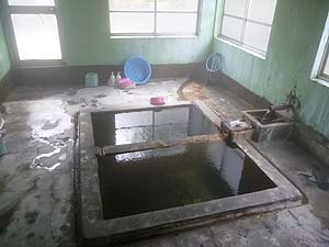 コンクリ製の浴槽はあつ湯とぬる湯とに別れており、あつ湯に入るにはかなりの勇気が(笑)。