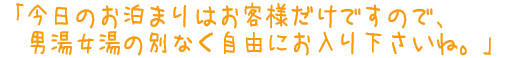 男湯と女湯は離れた場所にあります。今日ばかりはどっちも入れるもんね♪
