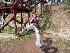 場内にはこんなりっぱなあずまやもあり、天気もいいことから浮かれるおしんこどん(笑)。