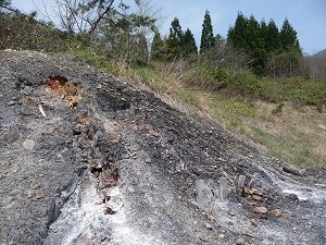 ‥われながら強欲です(大笑)。というわけでそれからしばらくの後、未舗装の林道を上っていくフォレスター号の姿がありました。結論からいえば源泉湯の湧出箇所は発見できなかったんですが、そのかわり噴気を上げている場所を見つけました。どれどれということでさっそく(ボッケの踏み抜きに注意しながら)噴気口の中に温度計を差し込んでみました(確か150℃まで計測可能なので壊れることはないでしょう)。すると‥