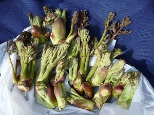 と、タラの芽をたっぷりといただいてしまったのであります!しかも、そのタラの芽たるやみな目をみはるほどの大物揃い!実はわれわれも別の場所(国有林内)で1つ2つタラの芽を収穫していたのですが、もうそれとは比較にもならない「上物」でございました。おじさん、大変ありがとうございましたーっ!
