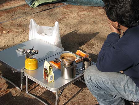 その昔、「ニューヨークの朝は1杯のコーヒーから始まる‥ダバダー♪」というようなコマーシャルがありましたが、おとうがご参加下さるキャンプの朝は「数杯のおとうコーヒー」から始まるのであります。これはもう定番。そして各自がトーストほかの軽食を済ませると、「それぞれの1日」が始まります。