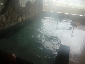 お湯は無色透明で、泉質は重曹泉ということですが成分があまり濃くないのか特にスベ感はありません。ちなみに浴室内は滑るので云々という表示があったので期待したのですが、たぶん浴槽縁の黒大理石の上が滑りやすいということなのでしょうね。ちなみにこちらの温泉は加温はもちろんのことですが循環も塩素殺菌もありということですが、吸い込み口に手をあててみても「吸ってます」という感じはありませんでした。オーバーフローもありましたんで、この日は「加温かけ流し」で運用していたのかなという気がします。お湯にあまり特徴がないのがちょっと残念だった気もしますが、湯上がりはいつまで経っても汗が引かずにかなり大変でした。