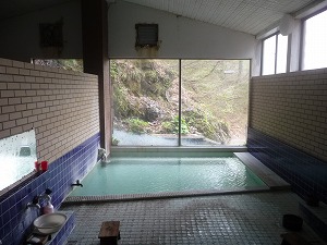 駐車車両の台数は7-8台というところで、湯から上がって休憩している人が一定数いるとすれば「もしかしたら貸し切り利用も?」期待できるところでしたが、脱衣場に入ったら3人の先客が。ん?でも皆さんお仲間&服を着始めているぞ。でももうお1人の先客が浴室におられるのでカメラ持ち込みはあきらめました(単独入湯の際は先客がいたらカメラを持ち込まない主義)。