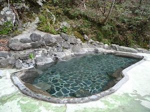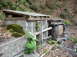 お湯をタンノーしているすぐ脇には沢が流れ込んでいて風情はいいです。でも正面が「全面スノコ」で隠されているので眺望はイマイチ。