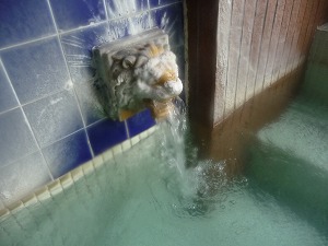 クンクンとにおいを嗅いでみると石膏臭が感じられます。ヌルスベではなくさらり感のあるお湯で、こんなお湯に毎日入れたら幸せいっぱい夢いっぱい、今日の夕食お腹いっぱい、でも晩酌は一杯だけよという感じなのであります(おっと晩酌一杯だけは勘弁して to おしんこどん)。それにしても中央画像、ライオン口からだけでは投入しきれなかったお湯の痕跡がスゴイです。是非この時に入ってみたかった!(たぶん入れてくれなかったでしょうけれどね)。