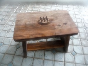 ちなみにこの内湯の桶と椅子は小じゃれた木製なのですが、この焼き印入りのセット、売っていないかなーと思わせるシロモノでした。ついでに「Takema」の焼き印も押してもらって‥いや、お金がかかるだけなのでやめておきましょう(笑)。