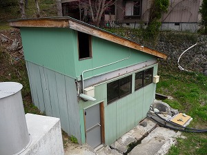 実は湯小屋の場所は前回訪問時に特定できていたのですが、あの時は高繁旅館の湯から上がった直後だったため入浴トライはしておらず、今回が初挑戦。というわけですぐ脇のお宅のピンポンを押したわけですが、2度ほど押してもどなたも出てきません。ちなみに車庫の車もありませんでした。ということは時節柄‥