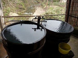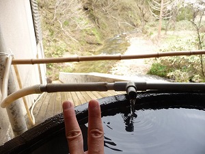 加水も循環もなく、ただ源泉のみがトロトロと流し込まれています。湯船の大きさももともと「樽」ですから推して知るべし、よっていざ入浴、内風呂で身体も温まっているしかけ湯不要!と意気込んで片足を突っ込みそして次の足を中空に上げたところで、Takemaの身体各地観測所から急遽届いたデータをもとに優秀なる中枢ブレーンが何やら緊急警戒警告速報を発令したのでありました!それは言わずもがなの‥