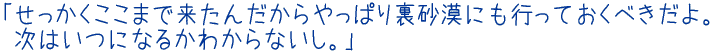 なるほど至極もっともな意見であり拒否する理由もありません。というわけで裏砂漠展望地まで一気に足を延ばすことに。