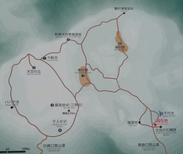 さてここからは来た道を表砂漠まで戻り、不動池と新東京百景展望地を経由する道を通って再び表砂漠に戻った上で下山しようかなという目論見だったTakemaでしたが、この予定を聞いたおしんこどんが一言。