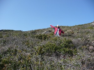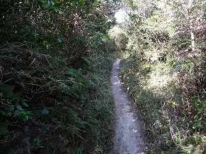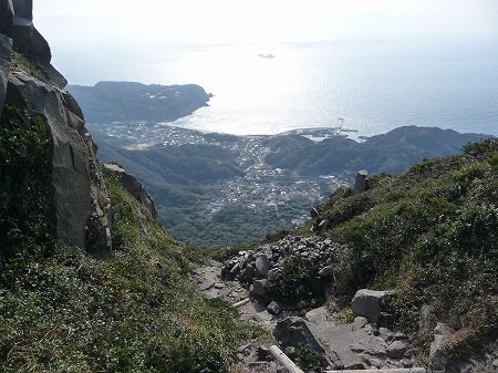 何だかスパっと道がなくなってます(笑)。しかしバイクを借りた神津島オートのオーナーによると「登りは40-50分、でも下りは15分だね」ということでしたからビビる大木には値しません。しかも道が整備されているのは勝手知ったる世界ですから、ショッカーがいくら「イーイーっ!」と叫んだとしても本郷猛の仮面ライダーが負けるはずはないのであります!(誰が藤岡弘なんだ誰が)。