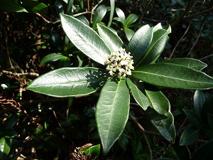 ここ天上山は「新・日本百名山(岩崎元郎氏選)」や「花の百名山(NHK選。田中澄江氏選のほうではない)」などにも入っている山で、オオシマツツジが咲く5月中旬あたりはさぞかしキレイなのだろうと思われますが、今回のハイキング時に見かけた花は上の2つだけ。右上の花はツツジのようでしたが、まさかオオシマツツジがこの株だけ早く咲いた?(確かに花の色はオオシマツツジと同じような感じですが)。