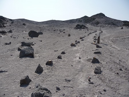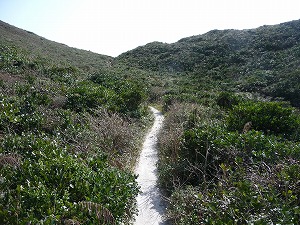 ルートを外さぬように登山道の脇に石が置かれていますが、これがなければ「ここはどこ?」という感じになること請け合いで、離島の中央部というイメージは全くありません。天上山に登られる方は是非裏砂漠ルートを歩いてくださいね。