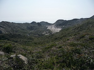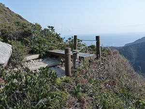 ちなみにのんびりした場所に見えますが、ここから海へ一気に落ちる急斜面は完全に崩落していて植物も生えていません(というか崩落の度合いが激しくて植物が育つ間がないというべきでしょうか)。多幸港に船が着く前に山頂から一気に崩落する大斜面が見えていましたが、どうやらこの一角もそのエリアに属しているようで、ということはやがてこの展望台のある場所も浸食されてしまうのでしょうか。いやいつかは確実にそうなる気がします。