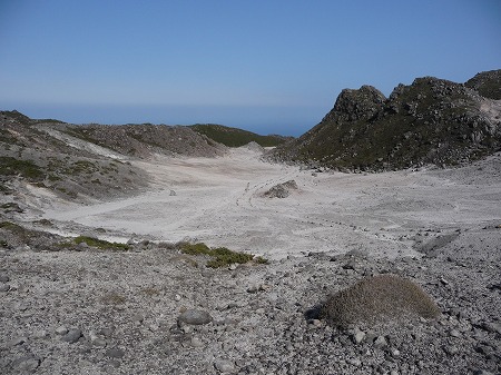 少し下ったところからふり返ると表砂漠が見えました。