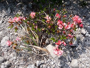 ちなみに右上画像の手前部分、「こんもりとした砂山の表面に植物の枝(茶色)が生えている」のがわかると思いますが、これがオオシマツツジの株なのだそうです。とはいえもっと他の植生がある場所にも生えるみたいですね。