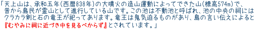 話が数十光年先にぶっ飛んでしまったのでここで軌道修正してイスカンダル、いや違った、でもそういえば「小惑星探査機 はやぶさ」は何とか地球に帰還する軌道に戻ったんだってね、素晴らしい!(2010/4現在)‥あ、これも違いますね。そんなわけで天上山頂上部から下り始めましょう。