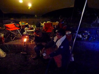さて夜もすっかり更けて日付も変わった頃、本日のキャンプ最後の参加者「Sさん」が到着いたしました!何とSさん、東京界隈にて本日のお仕事を終えたあと一路ここバラギへお越し下さったわけで、しかも恐ろしいことに(笑)、この翌日(いや、到着時にもう日付が変わってましたから「当日」というべきですね)は通常通り朝9時に勤務開始というわけで、僅かな滞在しかできないにもかかわらず(しかも眠る時間を削ってまで)わざわざお越し下さったというわけで、いやーオフキャンパーの鏡というか、わたしだったら絶対どこかで力尽きること必定だぞというおそるべきパワーの持ち主なのであります!(しかも「お土産持参」という心あたたまるご配慮)。ありがとうございますぅ!