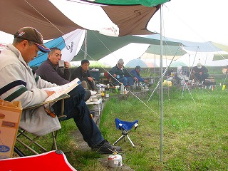 皆さんそれぞれ「わが陣」に陣取ってすっかりくつろぎモードですねー。